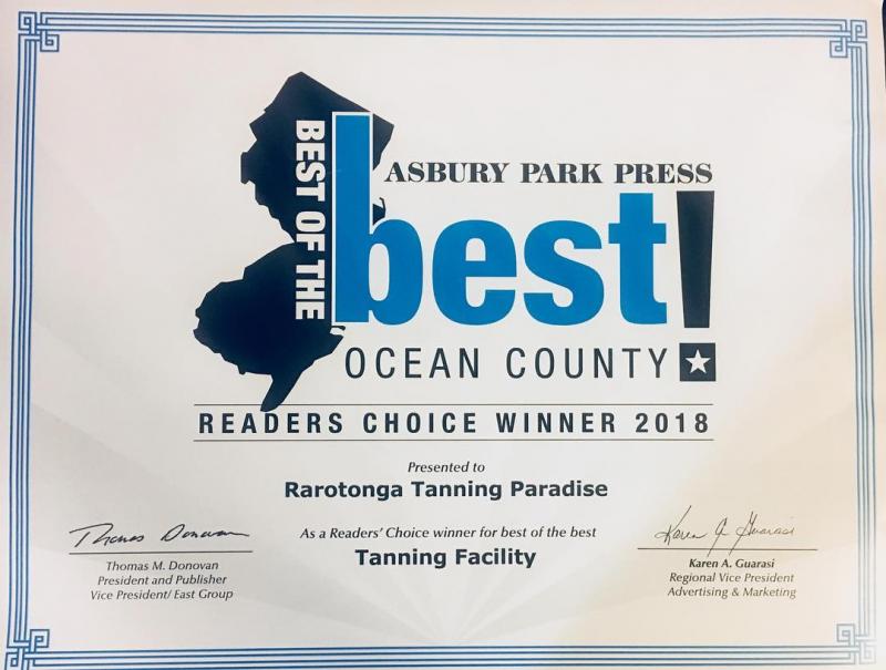 Once again, Voted #1 in the Asbury Park Press as the Best Tanning Salon in Ocean County! Proudly recognized as the most awarded Tanning Salon since 2008!